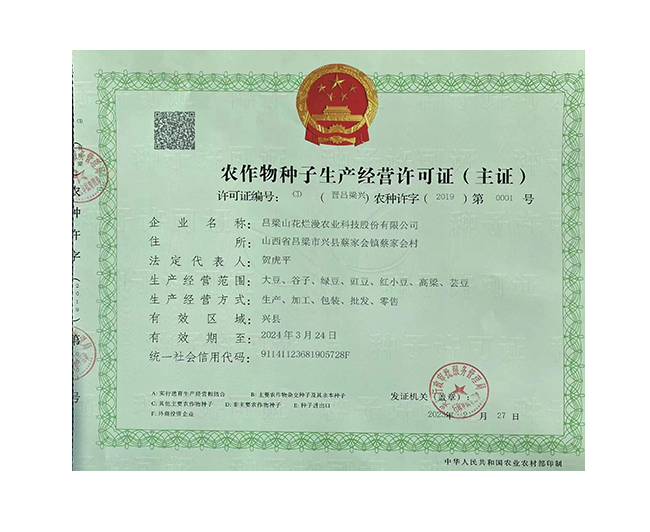 • 農(nóng)作物種子生產(chǎn)經(jīng)營(yíng)許可證(主證)